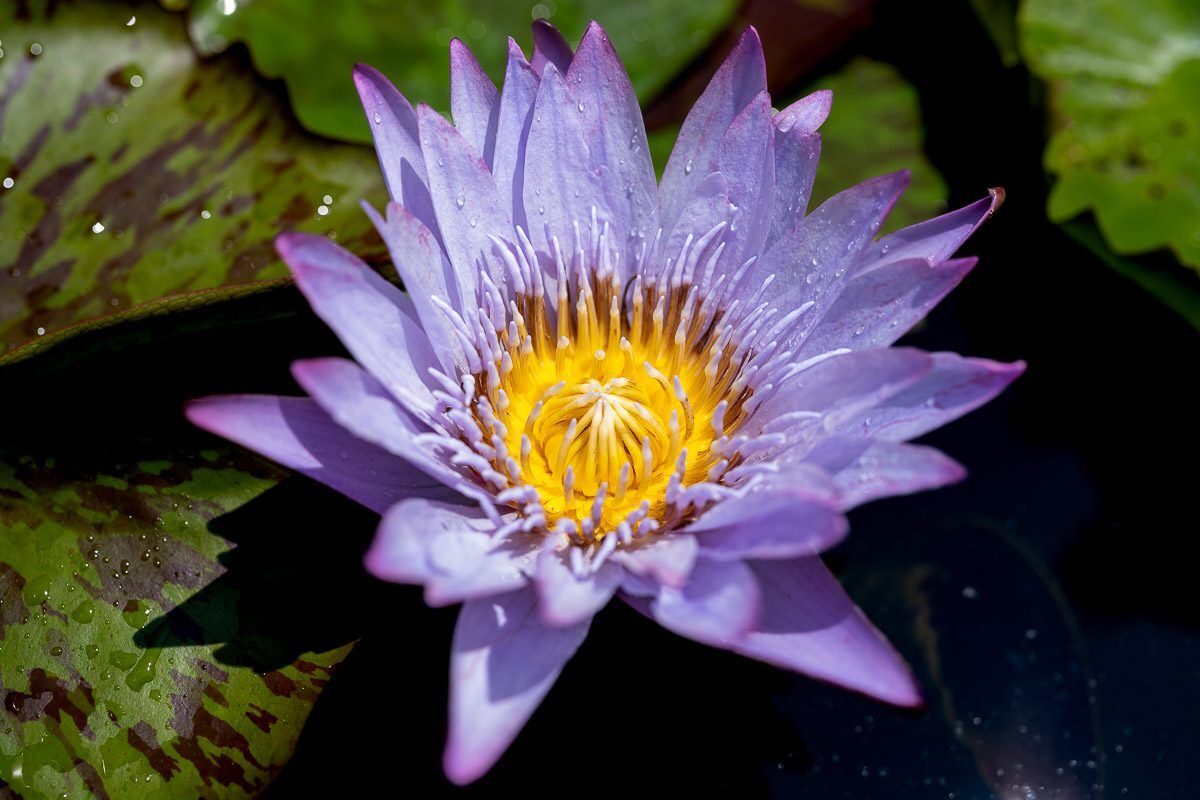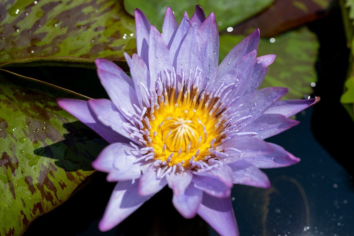 The flowers aren’t the only eye-catching part of a tropical waterlily. Their lilypads often have serrated edges and range in color from yellow-tinged burgundy to a mottled chartreuse and purple. These leaves can grow huge, with some measuring more than a foot across.