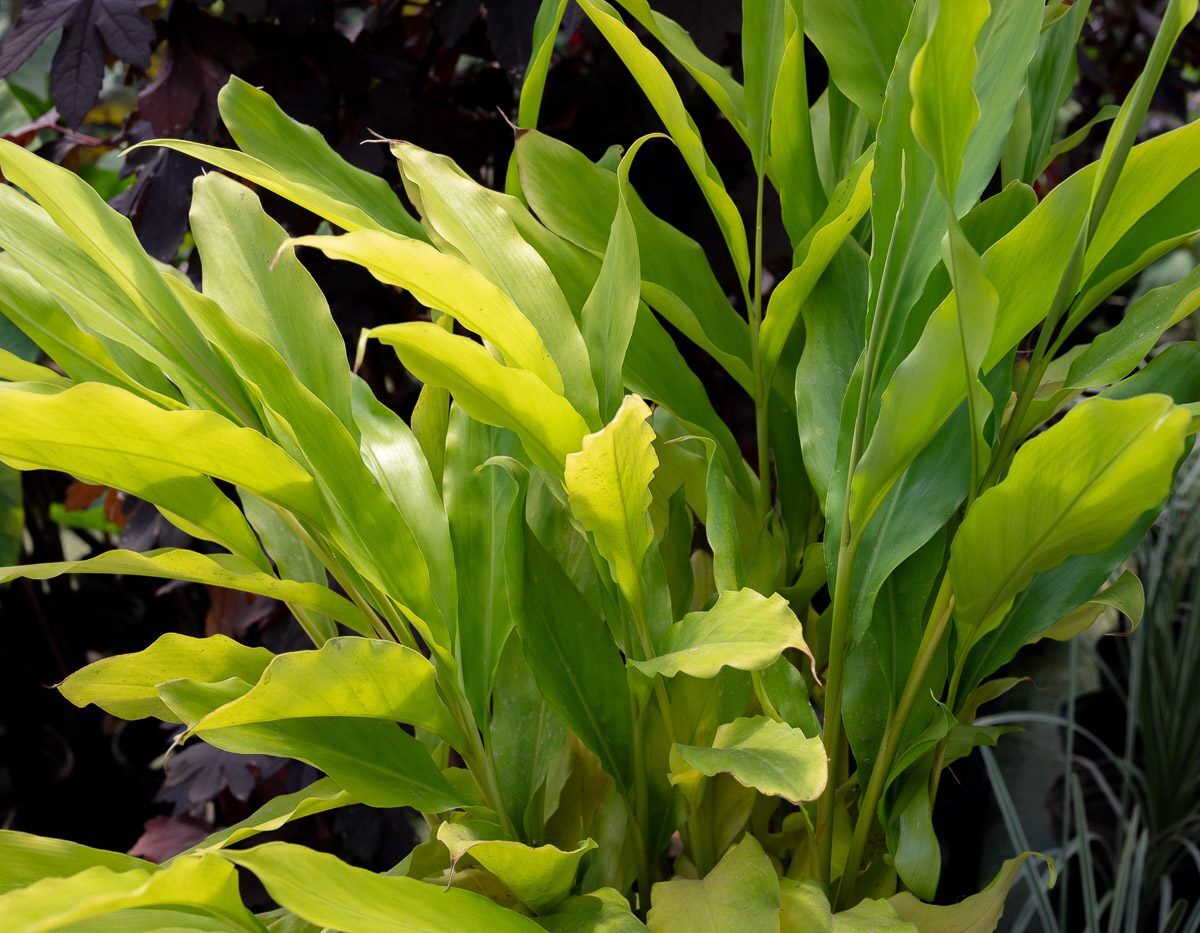 Need a plant for the shady margins of the pond? Cardamom is a great choice. This tropical plant has unusual white flowers with purplish veins and seeds that can be ground up for use in spicy recipes.