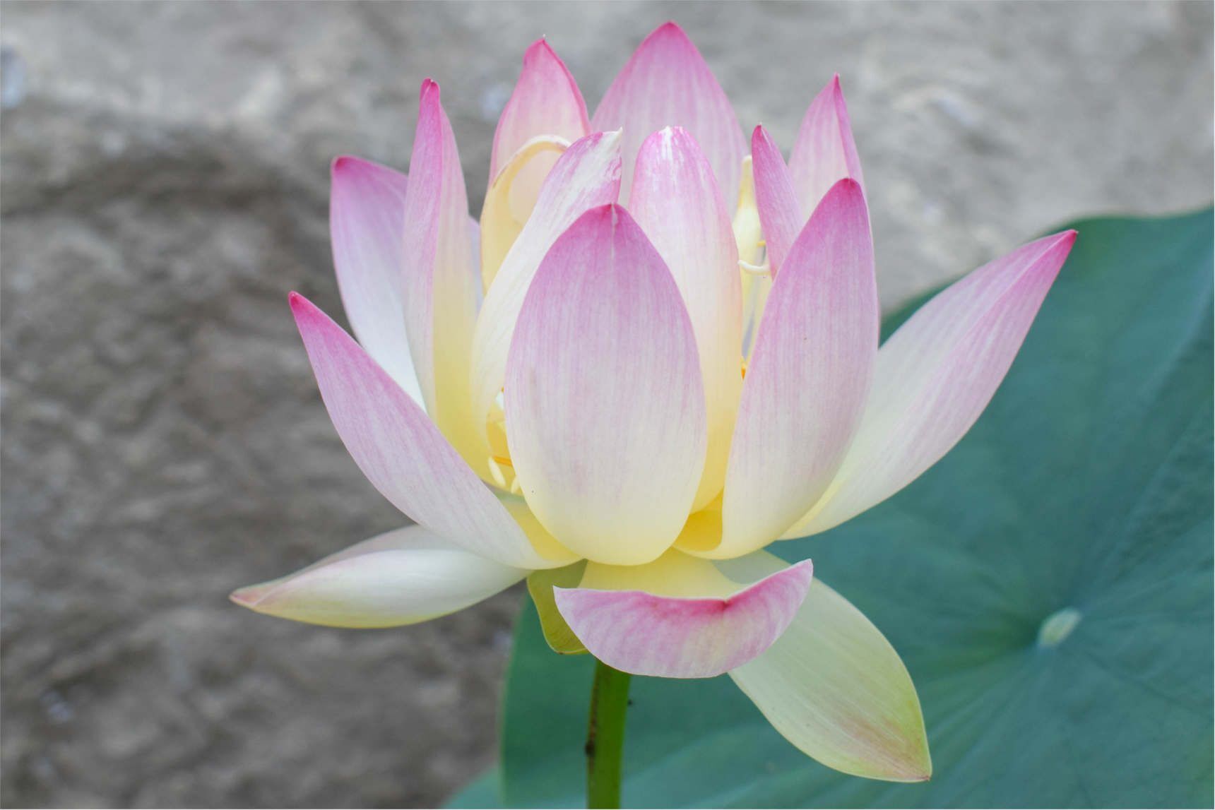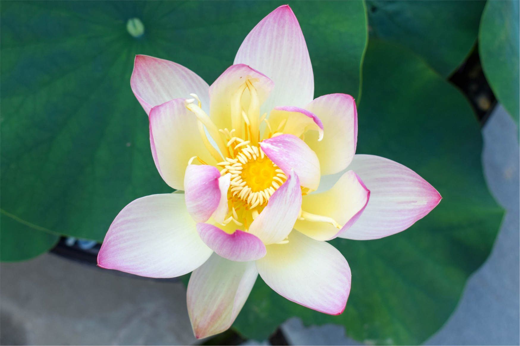A single-flowering dwarf lotus with soft yellow blossoms touched delicately with pink. Blooms early and a lot.