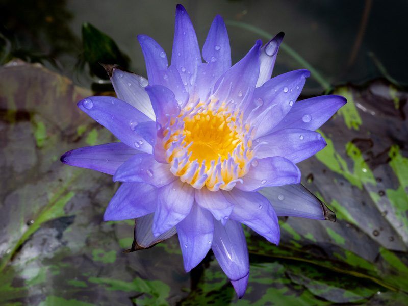 The flowers aren’t the only eye-catching part of a tropical waterlily. Their lilypads often have serrated edges and range in color from yellow-tinged burgundy to a mottled chartreuse and purple.  These leaves can grow huge, with some measuring more than a foot across.