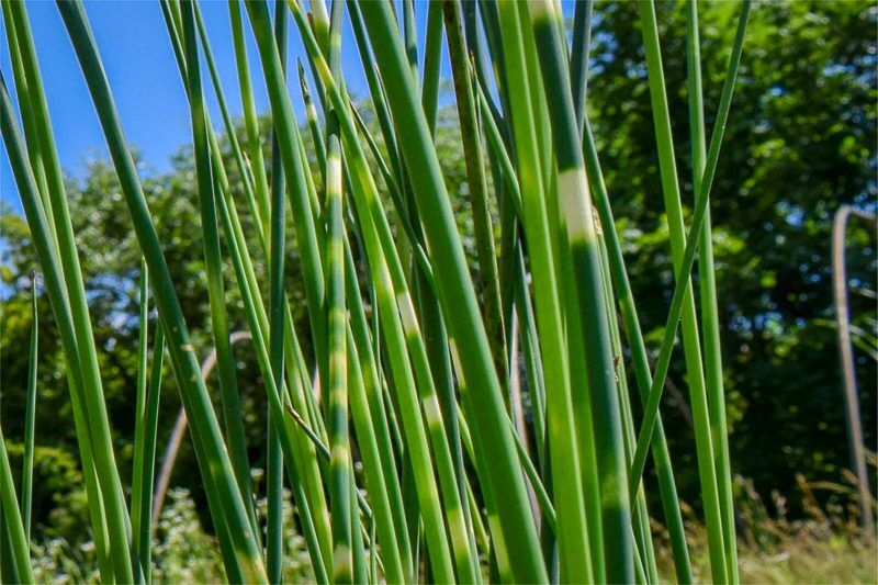 This rush cultivar has hollow, leafless stems with interesting dark green and yellow horizontal bands.